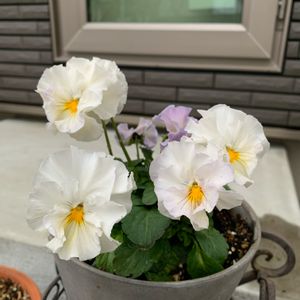鉢植えにしていたビオラ。 色も真っ白になってなんだか弱っていたのでダメ元で地植えにしたら可愛く咲いてくれました🌼