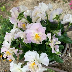 パンジー🌈 木村農園さんのフリル咲き可愛い〜💓 でもここ数日の暑さでお疲れ気味です😉