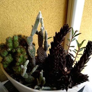 長男が大学で家を出るときに寄植えしたサボテンたち。 今年30歳になるということは、12年植替えしていない…右に植えた多肉植物は、もっとグリーンだった気がする💦 植替えしようと決めた、最後の写真。