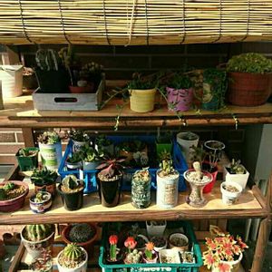 旦那DIY多肉棚も ずいぶん ぎゅうぎゅうになりました。(*´ω`*)ゞ 冬の間のこの子たちは 私はビニールで囲うかなと思っていたけど 旦那は仕事場の1角に (あっ自営業なんで) 冬季用にスチール棚を設置しました(笑) 私より動いてんな旦那(笑)
