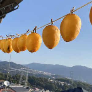 友人から渋柿を貰って ベランダに干してました。 (2枚目の写真は2週間前の) 丁度2週間が経ち 少し採ってみました。 柔らかくて甘くて 美味しいです😋 去年も、2週間位が柔らかくて美味しいと思いました。 デザートに毎日1人一個ずつ、家族で頂きます。