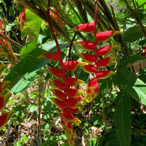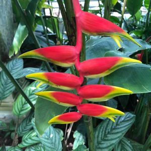 ヘリコニア・ロストラータ オウムバナ科 アマゾンの熱帯雨林に分布する 英名: Lobster claw カニ🦀の爪かと思ったら、英名はロブスター🦞の爪。元々のオウムバナ科はオウム🦜のクチバシから来ているそうで… 色んな見方があるんですね! とにかくこれはいつ見ても綺麗に咲いています🥰