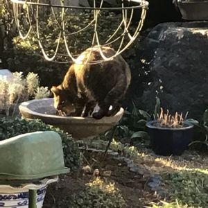 昨日の 野鳥の 水飲み場に、 今朝は なんとまぁ〰️‼︎‼︎💦💦 野良猫 🐈 が やって来ました‼️ 乗り込んで 入っちゃいましたよ!! 寒いから 凍ってる筈 なんですがぁ〰️‼︎‼︎😨💦 今日は 風 💨 の音が ゴーゴーと して 寒そう〜💦(*_*)
