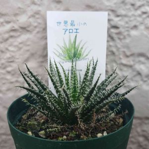 コー○ンに色々入荷しているみたいなので ちょっと覗きに…行ったら狩らないワケがない〜 _(┐「ε:)_𐤔𐤔 ちょっとちょっと!ヾ(゚Д゚ )) 世界最小のアロエですって!! ついにアロエにまで手を出してしまいました🤣 急に始まった𐤔𐤔 【第1回 小さいシリーズ!】 ✤アロエ ハオルチオイデス 10cmにも満たない極小種でハオルチアに似ている種があることからこの名前になったとか😆 棘?イガイガはプラスチックみたいで全然痛くないです✨ 1株の綺麗な苗もありましたが 既に子株があるのにしました(*´艸`)✨ 群生になるみたいなので楽しみ🎶