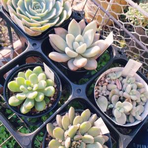 おはようございます🎵 昨日、みえ花フェスタに行ってきましたヽ(●´ε`●)ノ 葉牡丹やシクラメンなど 冬の花が格安だっので マダム達が台車を借りて運んでました。 旦那さんもかり出されてる感満載でしたが…😅 手前の3つは¥350❤ アリエルは¥500 エンジェルフィンガーは¥100 吉坂包装さんの多肉は強いから 去年お迎えした多肉ちゃんも 元気です(*´艸`*)💕