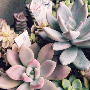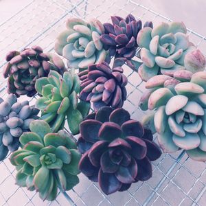 こんにちわ🍄 3日前に届いた多肉ちゃん❤ 届いた晩🌃はお部屋で過ごしたけど 翌朝は快晴だったので お外に出しました(* ´ ▽ ` *) それからずっとお外。 届いた時はみんながグレーでしたが ちょっと色が変化してきました❤️ どんどん可愛くな~れ⤴⤴⤴💓 だるま秀麗とピンクルルビー以外はお初のお迎え🎵 そして❗七福神デビューです⤴💓