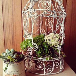 ワイヤーで鳥カゴ作って中に寄せ植えしてみたよ 根付くのが楽しみ💖