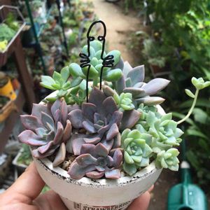 ワイヤーをグネグネして 多肉植物を植えました 早くサビサビになりますように♡ 固まる土『ネルソル』を使えば 多少浅くて不安定なところでも 寄せ植えが崩れることがないので とっても安心です(ㅅ´³`) このテイスト、筋肉痛になるけどハマってます 笑