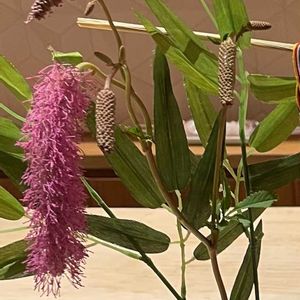 【唐糸草】《バラ科》 花言葉 「深い思い」「繊細」 ・日本原産。 ・夏から秋にかけて、 たぬきのしっぽのような形の ピンクの花が咲く。 絹糸のような花の様子が、まるで 外国(唐)からきた糸のように 美しいことから「唐糸草」。 ラテン語の 「sanguis(血) + sorbere(吸収する)」 が語源。 根にタンニンが多く、 止血効果のある薬として 利用されることから。