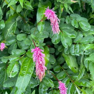 カライトソウ(唐糸草) バラ科・ワレモコウ属 日本固有種 和名:唐糸と名前がつくのは外国の鮮やかな糸を例えてで学名でサングイゾルバ・ハクサンネンシス(白山の血を吸収する)といい血を止める止血剤に使われていたことに由来する名前になっています。ワレモコウ属ですが、ちょっと引きぎみで見ればワレモコウと言うよりオオイヌタデ⁉️ 近くによればチカラシバをピンクにしたような猫じゃらしぽい花ですねぇ。 花が美しく大きくなるので山野草としての人気も高く乱獲されている植物のひとつで長野県のレッドデータでは絶滅危惧 ⅠB(EN)に指定されています。 因みにハッポウワレモコウはワレモコウとカライトソウの交雑種だと言われています。