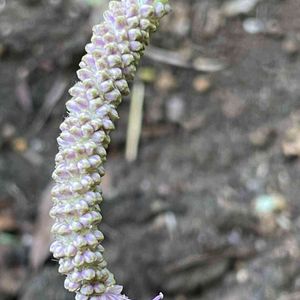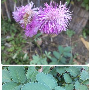 ピンク色のお花。 カライトソウ(唐糸草)と教えていただきました。 棒状に咲く唐糸草がどういうわけかクルンと回って丸い花のように見えます。葉も🔍すると唐糸草と出てきます。