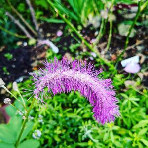 🏷️木曜モフモフ 🏷️青い花で秋祭り2022 🏷️青い山野草マニア 🏷️モダンな木曜日 💟カライトソウ(唐糸草)💟 バラ科・ワレモコウ属 紅紫色の萼が穂状に垂れ下がり花のように🌼🎵 初めて見ました👀🤗 花言葉💐 『深い思い』『繊細』