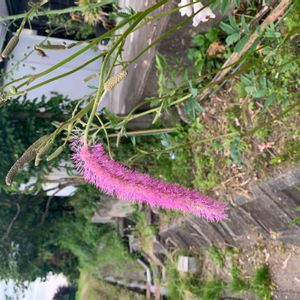 ピンクの猫じゃらし? パチリ Googleレンズで調べたところ「カライトソウ(唐糸草)」のようです。😊 ワレモコウの仲間で、根にタンニンが多く、止血効果のある薬として利用されていたのことです。😳
