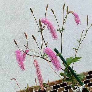 "木曜モフモフ" 散策路沿いの花壇。 可愛いピンクのモフモフに出会いました。 調べるとカライトソウ(唐糸草)とのこと。 だらんと垂れたシッポのような穂状のピンクのお花が可愛いな。 撮影日 2022.8.上旬 以下、メモです。 カライトソウ(唐糸草)はバラ科ワレモコウ属の多年草。夏から秋に、だらんと垂れた穂状のピンクの花が咲く。花は先端から根元に咲き進む。目立つ花びらはないが、紅紫色の雄蕊(花糸)が1cmほどの長さがあり、カライトソウの名はこの雄蕊を唐糸(絹)に見立てたもの。