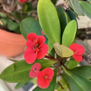 花ものが少ない我が家の植物たちの中、 鮮やかな花を咲かせてくれるハナキリン🌺 クリスマスっぽくてかわいい✨🎄