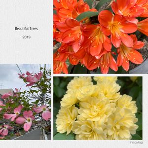 こんにちは 今日、街で出会ったお花さんたちです オレンジのユリかな綺麗です うちのユリさんも早く咲いて欲しいです その下はバラ科🌹のお花みたいです 綺麗で少し変わった感じです 左は多分?ハナミズキかな? 自宅近くにハナミズキの並木道があって色々な色のお花が咲いていて綺麗です