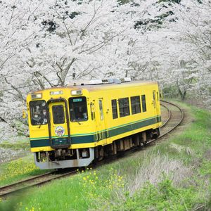 サクラはまた来年見に行こう🚙💨 花粉症もそろそろ終わり〜 photo:ソメイヨシノと黄色い列車! 電車じゃないよん♬