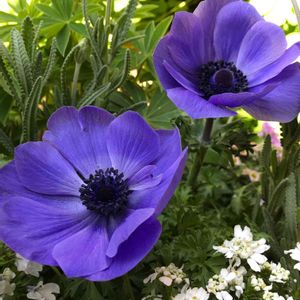 アネモネの花🌼 お日様受けて蕾がフワリと開花🌺 圧倒的な大きさだけど大人色で グリーンに馴染んでいて好き❤️