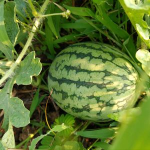 おはようございます☀😀。朝6時30分頃です。主人の畑のパトロールして来ました。 スイカが、2.3個朝日に照らされてました🙆 まだまだ今から🍉大きくなります。カラスに見つからないように😉夏野菜収穫、キュウリ🥒は、雨不足で曲がるのばかりです。トマト🍅は、お天気大好きなのですくすく大きく赤くなってました。黒皮カボチャも、今は綺麗な緑色!けっこう大きくなりそうです!種から育ててるので主人は、収穫まで楽しみのようです🙆💓。 日中は暑い🫠ので、朝仕事頑張ってます💪👍🥰。