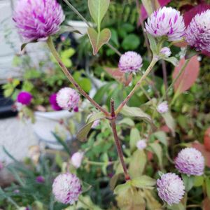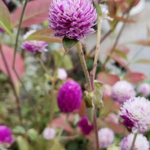 お疲れさまです🤗 💜千日紅絞り💜 まだお花は咲いてますけど 葉っぱが黄色く枯れてきてます そろそろ終わりですね ほんとになが〜く 咲いてくれました 感謝💖😊🙏🏻です
