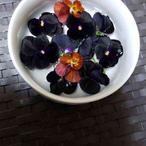 お疲れさまです♬ ビオラのお花の長い所を 切りました 浮かべてみました✩.*˚