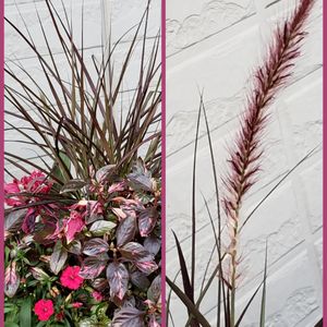 こんにちは😃 今日も爽やかですね 先日寄せ植えした パープルファウンテングラス に穂がでてきました🎵 もう少し赤く❤️なるかな〰️