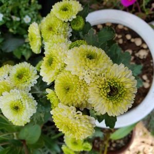 おはようございます😊 朝は涼しいです 日中は暑くなりそうです 💛菊 ポンポン菊の仲間で いいのでしょうか⁉️ 派手さはないですが 素朴さと💛💚色が 好きです💕