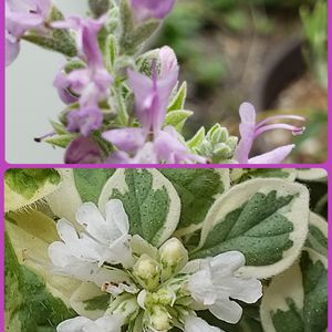 こんにちは😃 今日は雨☔降ってません 気温はわりと高めです ハーブ🌿オレガノ ちっちゃい白お花咲いてました ハーブ🌿ローズマリー💜 のお花です