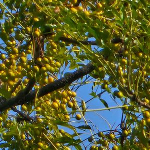 木の実シリーズその1️⃣ センダン。 センダン科センダン属。 丸い大きな実を付けていました。サポニンという物質を含むため、食べると食中毒を起こすそう。また、数珠の玉に使われる。
