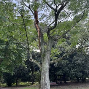 〜 センダンの木 〜 8月25日に京都市を襲った大雨で京都府立植物園のセンダンの木が落雷の被害を受けたそうです。 雷の衝撃で弾け飛んだ樹皮は30m離れたところでも見つかったそうです。 傷んだところから腐食することがないように傷が分からない程度に切り戻すそうですが、同園に戦前からある宝のひとつだそうなので、来春も無事に花を咲かせてくれたらいいですが。 '25.8.30