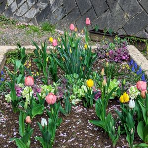 職場の花壇も 手入れしています。去年から 始めた花壇の手入れ。 11月から3月上旬まで日陰です。手前のチューリップはDCMの日陰でも咲くチューリップと オランダ輸入の大きい球根のチューリップです。 オランダの大きい球根と日陰でも咲くチューリップは全体的に丈が低いです。 奥のチューリップは 楽天で購入した 普通のチューリップです。