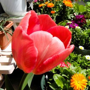 花のある生活🌹我が家で一番大きくひらいたチューリップ~~こぼれ落ちそうです・・・😆