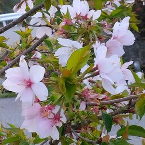 3/30日に咲き始めました 4/8満開 花びらの色が白~ピンクへと変わって長く咲き、綺麗な越しの冬桜です🌸🌸🌸孫(男👨)の高校2年の春の記念樹です。6年の若木ですが春と晩秋の2回咲き楽しませてくれます!