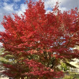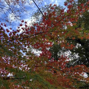モミジ🍁まだ投稿しちゃいます🙇♀️ 日に日に赤くなり綺麗🤩 内側はまだ緑もある…👀 落ち葉掃きは大変だけどね…🤣 毎年思う…集めて焼き芋🍠作れるよ🤣