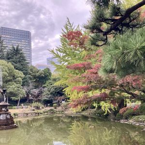 日比谷公園の雲形池の周りでは、赤く紅葉した「モミジ」が映えていた。