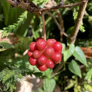12/17㈬① 今日のお花 サネカズラ(実葛) 昔、枝などから採れる粘液を 整髪料にしたので、美男葛とも書かれます 実は生薬にも用いられるそうです マツブサ科サネカズラ属 神代植物公園植物多様性センターで11月半ば過ぎに撮りました! 出会えて嬉しいです🤗💞 花も見たいけど暑すぎた夏は多様性センターに行けなかったです😵😅