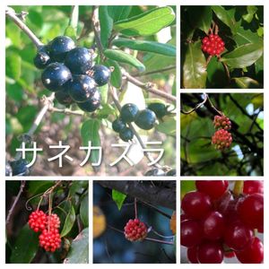 今日のお花✨ サカネカズラ♡マツブサ科 サネカズラ属 つる性の常緑樹 (植物図鑑より) ☝🏻秋季盆栽展 にて(^^♪ 別名:美男葛 🏷️コラージュ仲間達
