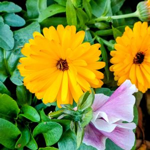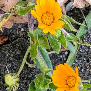 おはようございます♪ ♡今日のお花♡ 🌼冬知らず(フユシラズ)🌼 🌼カレンデュラ、ヒメキンセンカ🌼 キク科カレンデュラ属 耐寒性一年草 開花期11〜4月 冬の寒さに強く、真冬でも元気に咲いてます