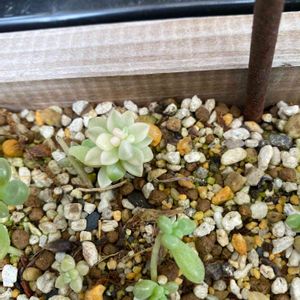 姫秋麗丼(予備軍)の中に 唯一生き残った姫秋麗錦ちゃん。 頑張って👍 風が強くなってきて 避難してる多肉に 雨がかかる〜〜〜😱