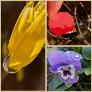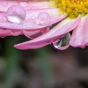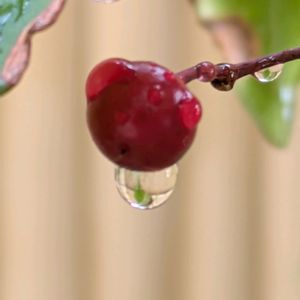 ナンテンの実に、雨粒が〜💧 垂れてる雨粒の中に、南天の枝葉が、 実に残ってる水分の中に、フェンスが映ってるのです。 こんな世界が好き🥰