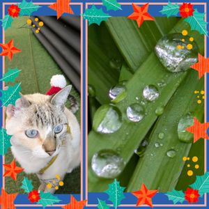 おはようございます(*^^*) 今日は某カラオケ店のXmas会へ参加する為、 早起きしました。 超〜久し振り、みちのすけさんの #ニャンニャン祭り に参加します。 にゃんこちゃんは、いつも行く園芸センターの看板娘、たまこです。 雨粒のたまたまと、コラボさせました。 たまたまだらけ〜ꉂꉂ(˃▿˂๑) 今日も一日、楽しく過ごしましょう♬