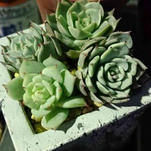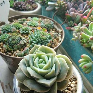 夏の放置で状態が悪くなってた子を寄せてみた(*´ω`*) 本当はもーーっと大きかったけど 徒長してたり、元気の無い葉をとってたら ミニチュアサイズに😂