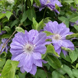 今日は早めに帰宅できました😊庭に出てみると咲いてる!咲いてる! クレマチス『キャサリン クランウィリアム』です!花と花が頬っぺ合わせているように咲いてます😄💕