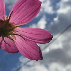 空を仰ぐコスモス 今日 福岡でも初雪が観測されたそうです。