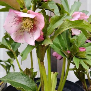 杉山交配クリスマスローズのチビッ子17つ子苗ピンクスポットさん💕可愛い色になってます🎵 (๑´>᎑<)>᎑<`๑)ぎゅ〜💗