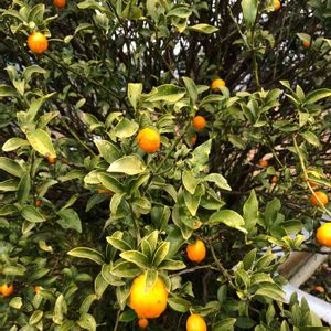 12/2 ☂️。。 時々 豪雨☔☂️ 金柑。。植木鉢。。2m程。。意外と甘い🎵 🌿柔らかい🌱新葉は🦋芋虫の餌食になる…… 🍊まだ早いのに ヒヨドリが食べ始めた… やめてよ、これは🍊私のよ🙅