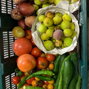 今日の収穫 上からイチジクホワイトゼノア きゅうり夏涼み 庄屋大長茄子 ミニトマト🍅色々 ちまたではきゅうり 120円だそうですね😅💦 お野菜のリクエストが有り 持って行き用