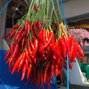 鷹の爪 赤くなったので収穫 束にして干しています🍀 冬の漬物はこれで🆗