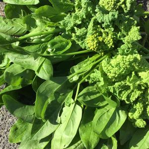 ほうれん草 菜の花 先程収穫しました ほうれん草は お正月には間に合わず(T . T) 暖かいせいかちょっと トウダチ💦 菜の花は食べ頃 有機肥料と土を足しておきます🍀