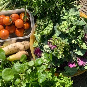 今日の収穫 トマト🍅 菜の花 ラディッシュ 水菜 プチベール クレソン トマト🍅はやはり10個ですね なんでだろう⁉️いつも同じ😊🍀